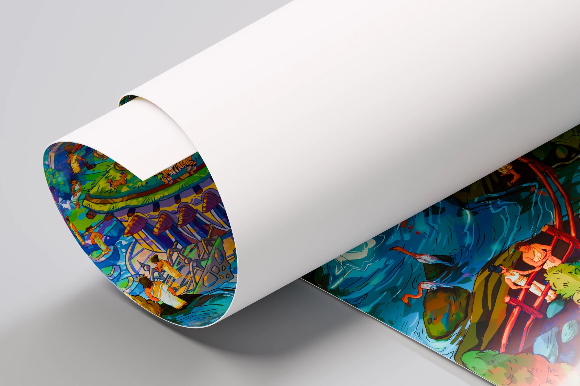275 GSM thick paper with (Metallic Silver Finish), with Deep contrasts, shimmered highlights, and crisp linework
