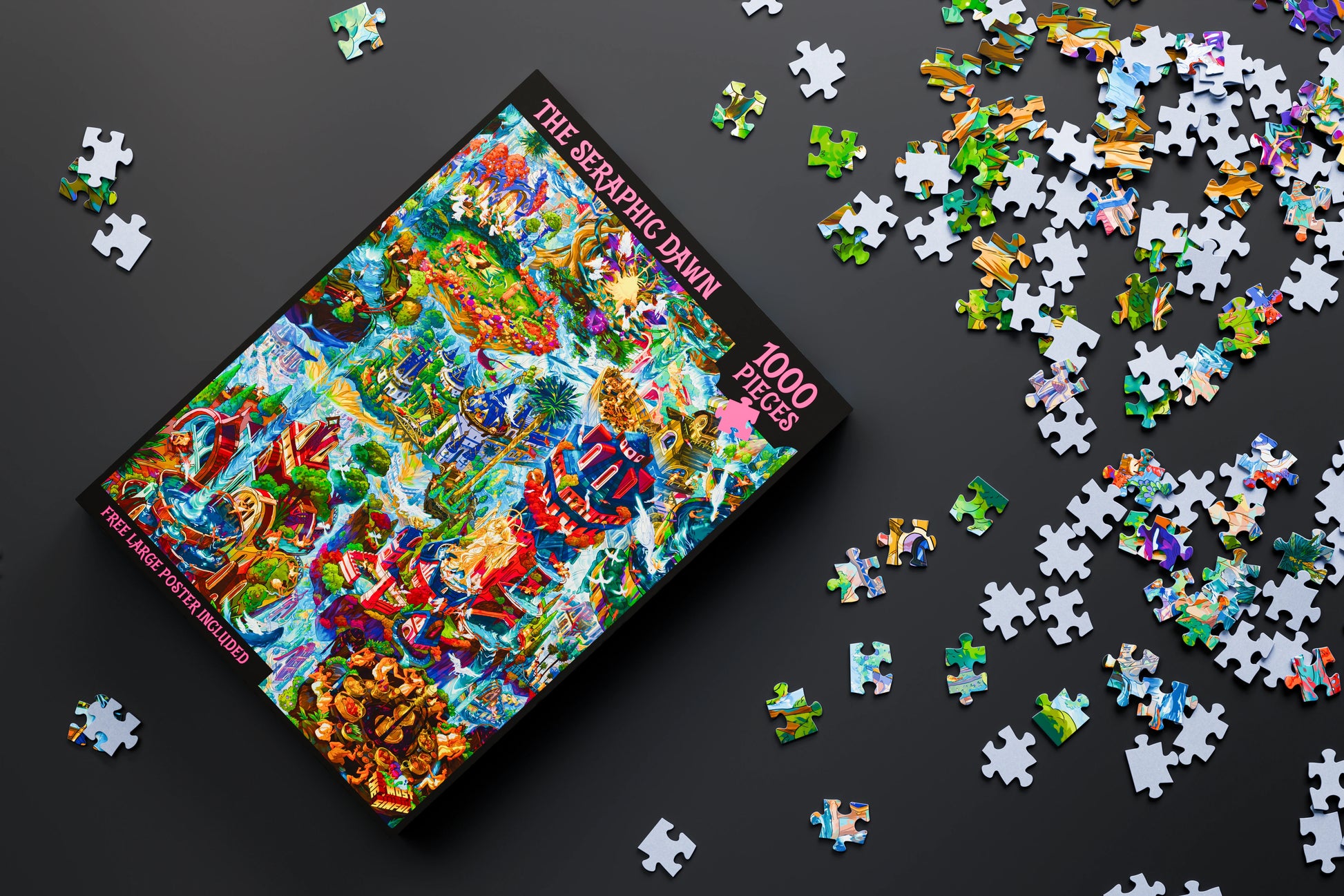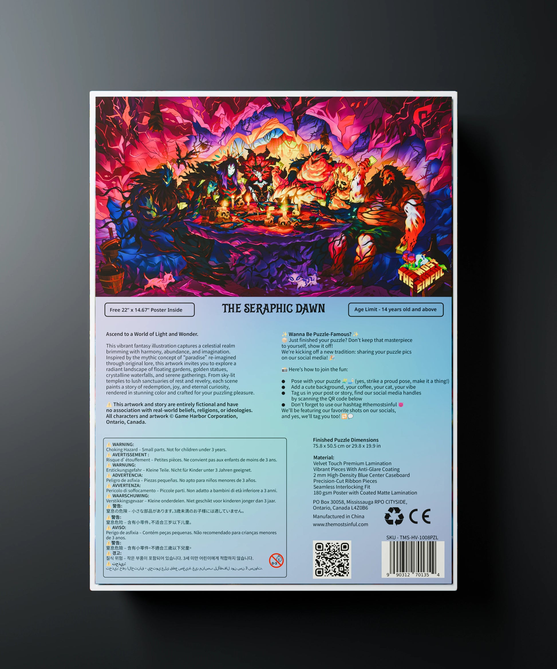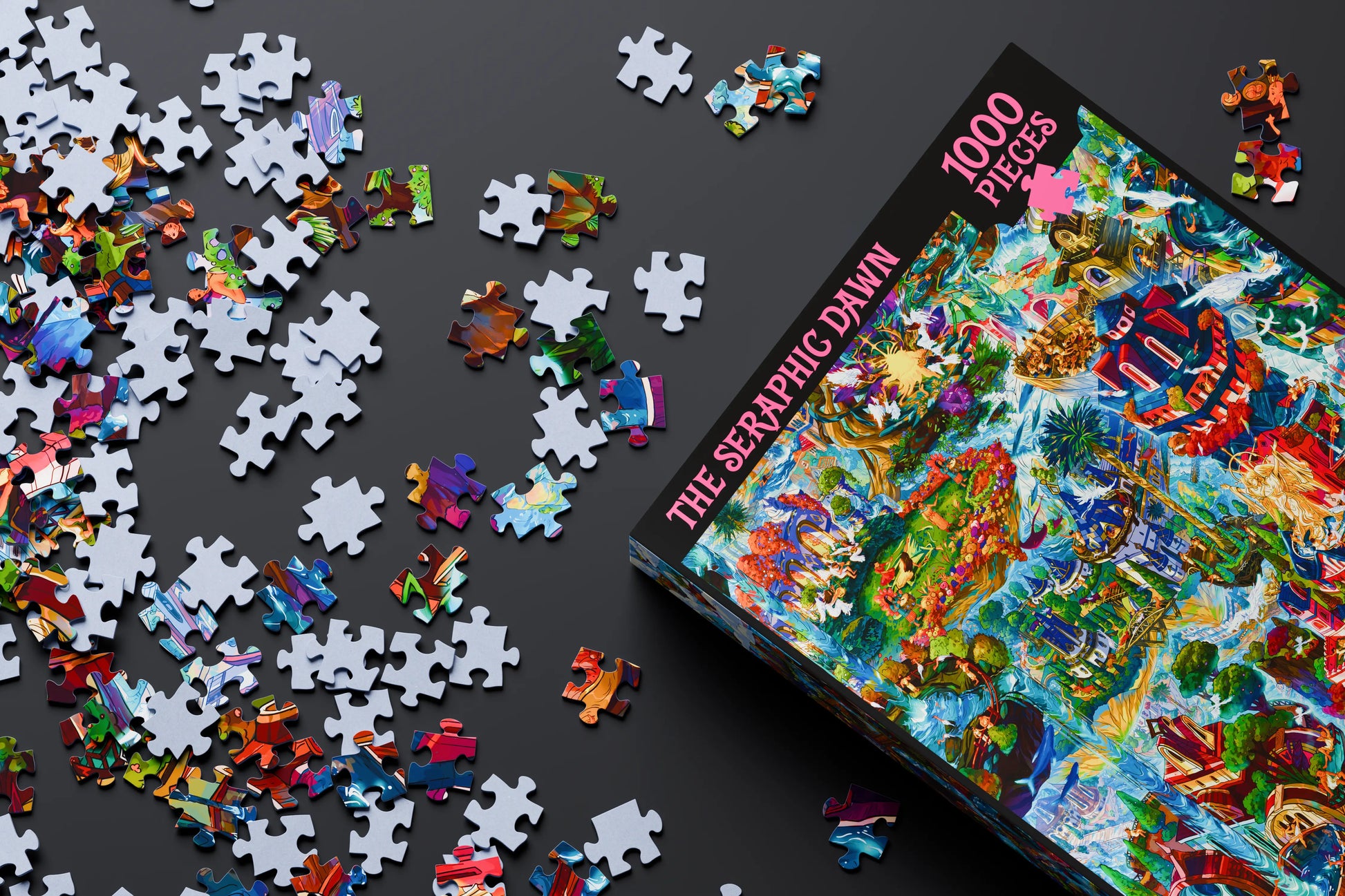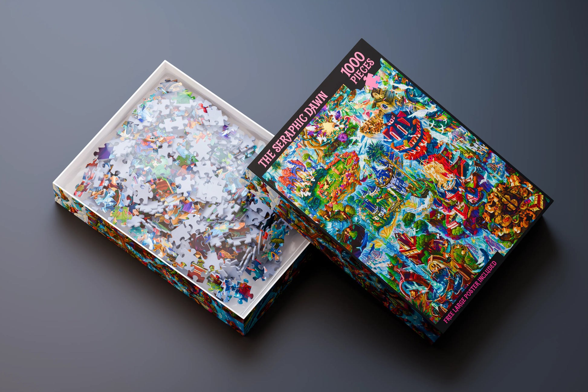 The Seraphic Dawn is a heaven-themed jigsaw puzzle based on the ethereal artwork from our Heaven Poster. This 1008 piece puzzle radiates peace, symbolism, and celestial storytelling, a slow, meditative dive into light and form.